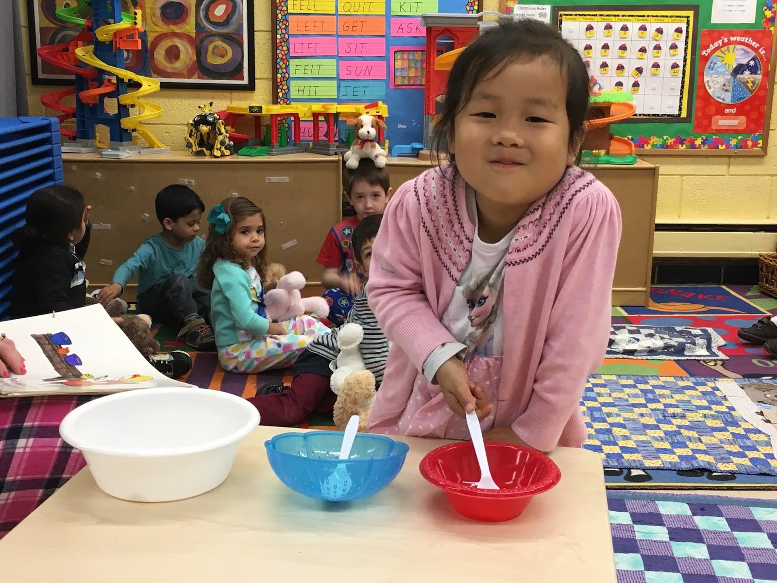 The children had so much fun sitting on a blanket and having a teddy bear picnic. We ate Teddy Grahams and fruit and shared stories about our stuffed animals.